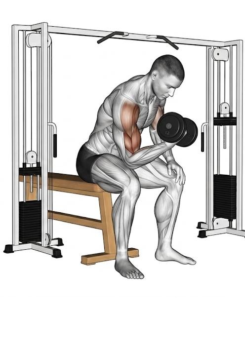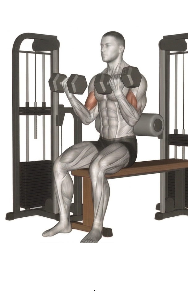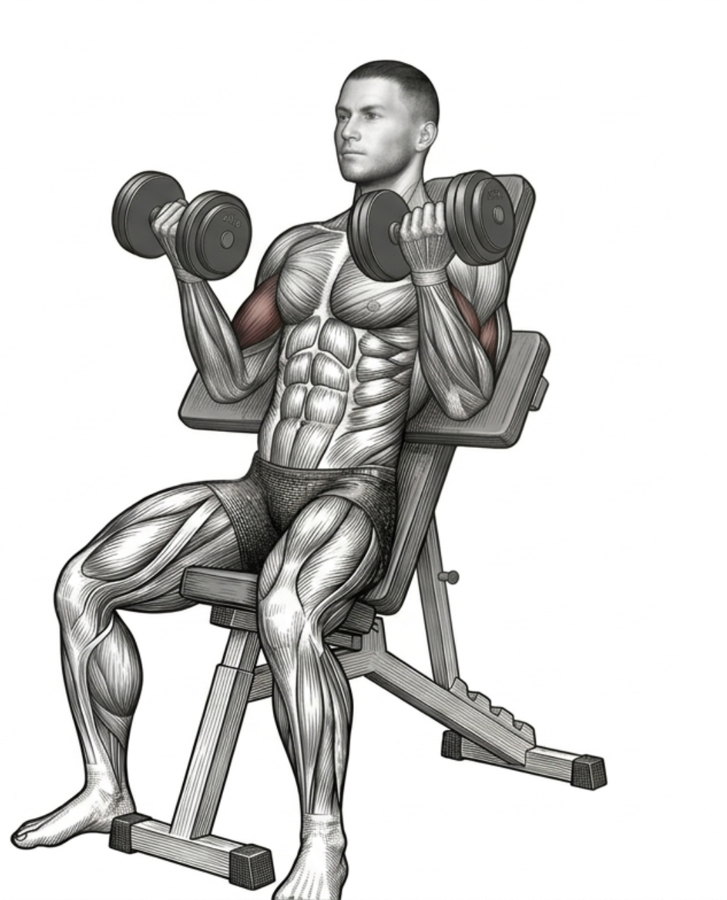 Сгибание на бицепс с гантелями с упором рук в скамью