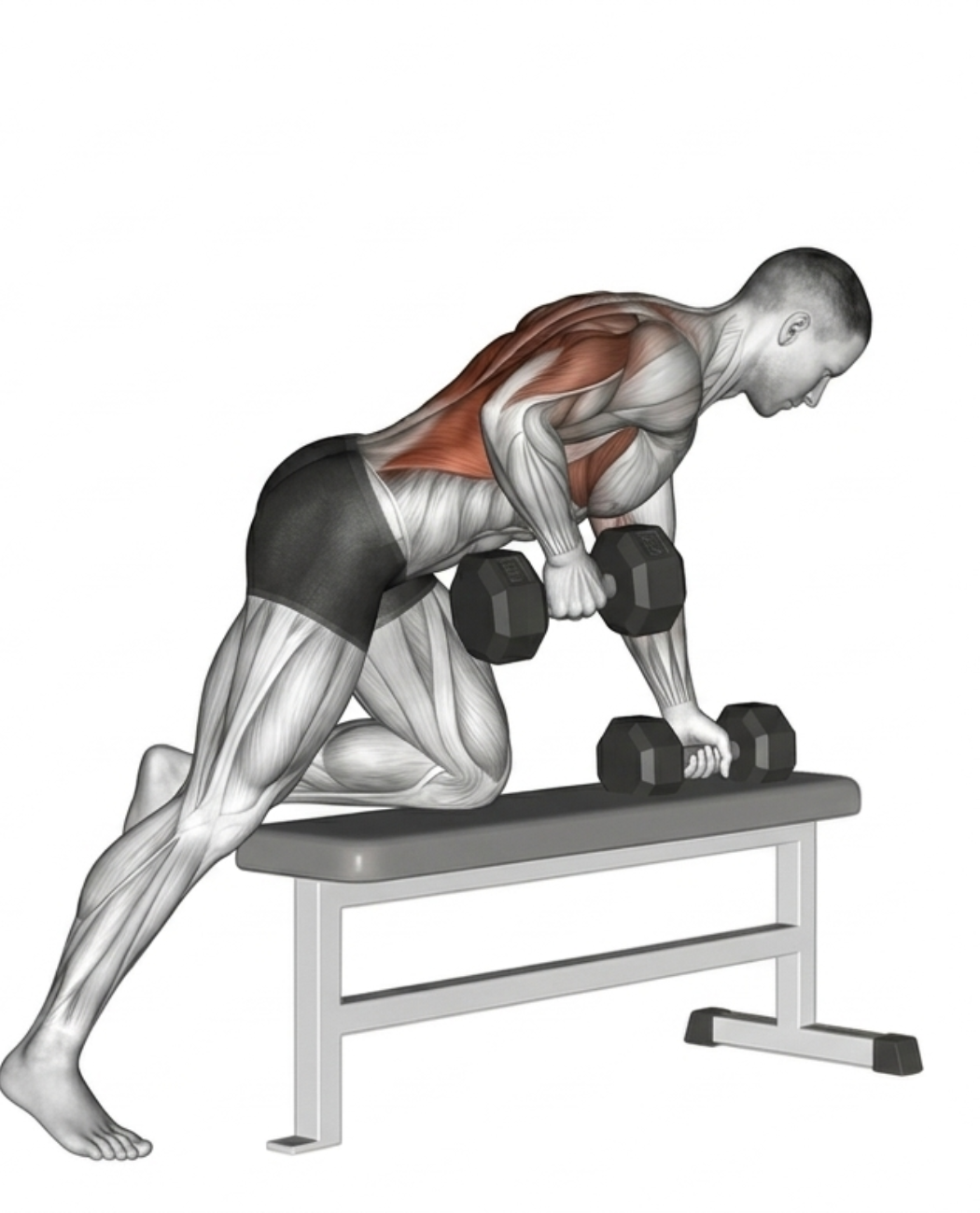 Тяга гантелей в наклоне (акцент на широчайшие и ромбовидные мышцы)